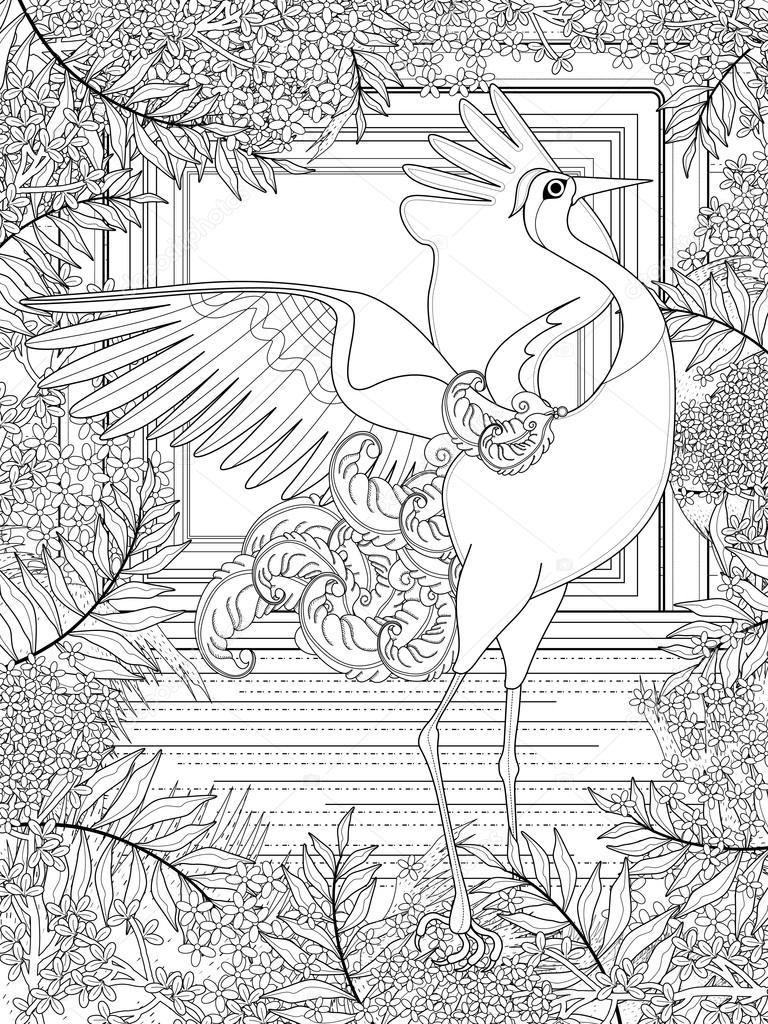 Crane coloring pages for kids online.